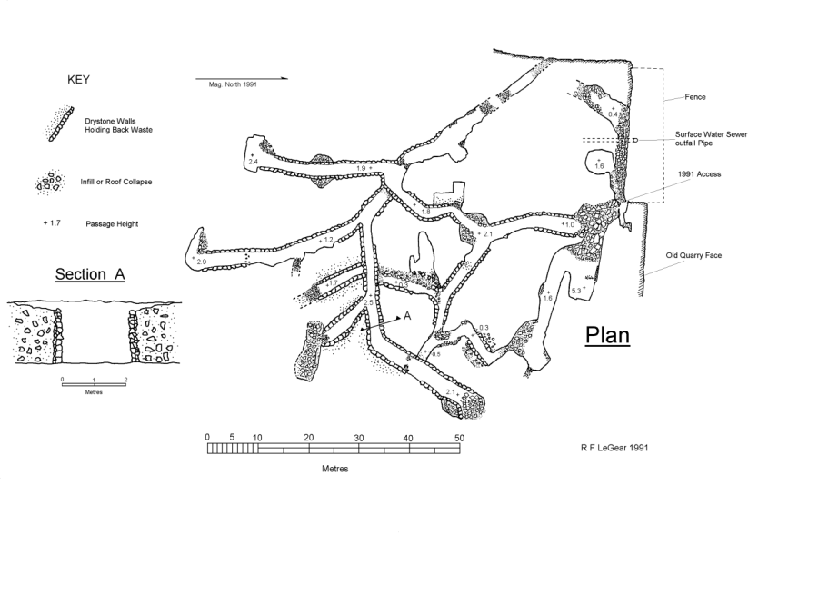 A measured survey will be made using accepted cave survey techniques to a British Cave Research Association standard (see Appendix 3) which will plot the underground structure and any historical and archaeological features.